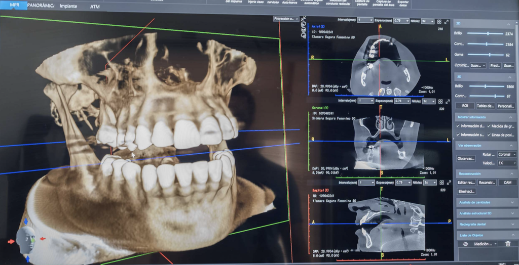 Treatment begins with facial analysis, intraoral scanning, and cone-beam tomography to evaluate bone volume, density, and occlusal relationships. This diagnostic phase allows us to determine implant feasibility and select the optimal full-arch protocol based on each patient’s anatomy.